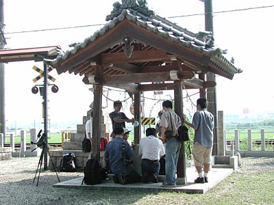 ![]() 眼鏡橋撮影の電車待ちの時間、オアシスでしばし談笑・・・ |