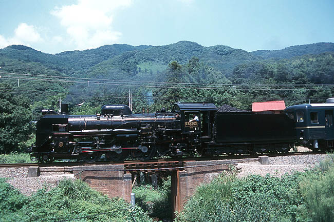 波久礼〜樋口間の、レンガ造りの橋梁を渡るパレオエクスプレス。鉄橋は、なんと明治44年製!