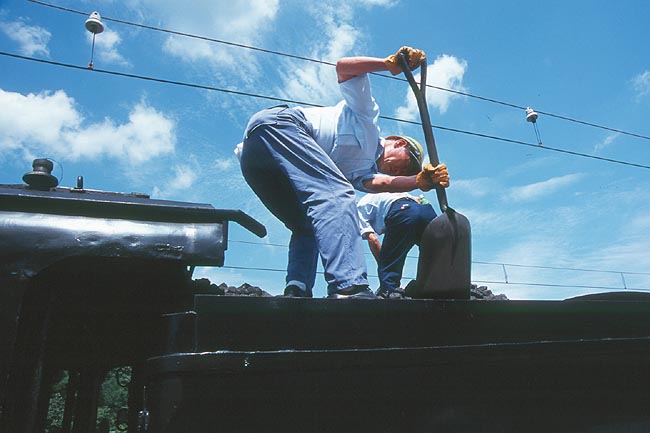 折り返しの三峰口では、給水、注油、豆炭・火床整理、転回が行われます。