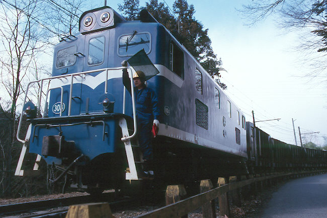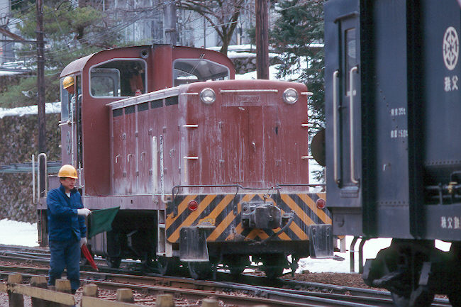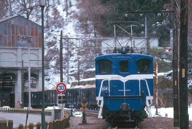 太平洋セメント三輪鉱業所より、石灰石を満載したヲキを引き出すデキ108。 岩手県の松尾鉱業鉄道からやってきました。顔の”庇”がチャームポイントです。