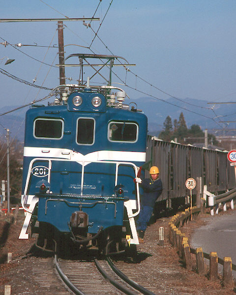 三輪構外側線は、デッキに係員が出て誘導します。デキ201は、現在ダークグリーンのパレオ色になっています。