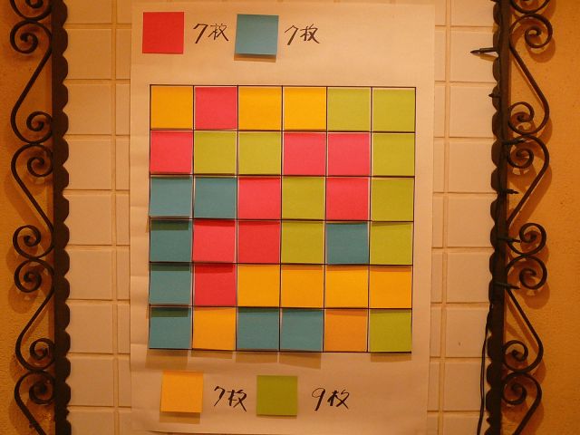 再び集合地点に集まった各チームは自分たちの行ったパネルを 誇らしげに宣言していく。結果、どこともかぶらないコースを 選んだ黄色チームが、ビールの誘惑に負けながらもトップ。つ いで赤チームと重ならないように戦略を変えた青チームと激戦 が予想された地域にいち早く進出した緑チームがこれにつづき 、赤チームは前半青チームとかぶり、後半緑チームとかぶり、ポイン トゼロという結果であった。結果的に赤チームの大遠征は大失 敗に終わったのであった。