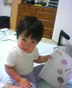 ![]() *ニューおもちゃ。下の玉をたたくと、上から出てくるのだが、ちひろは上手にたたけず、不評* |