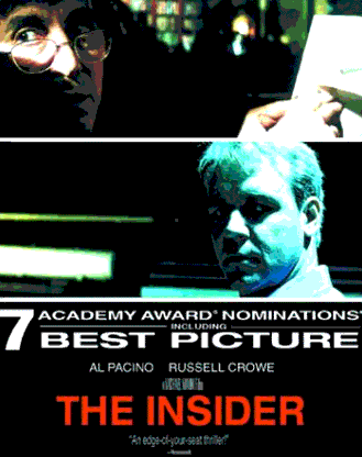 Directed by Michael Mann Genre: Thriller / Drama Plot Outline: True story of tobacco executive-turned-whistleblower Jeffrey Wigand and his relationship with "60 Minutes" producer Lowell Bergman. User Rating: 8.3/10 (6733 votes) Cast overview: Al Pacino / Russell Crowe |