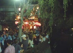山車には人もたくさんのっていてまつりばやしがピーヒャラ♪と。 お祭り好きとしては血がさわぎます! |