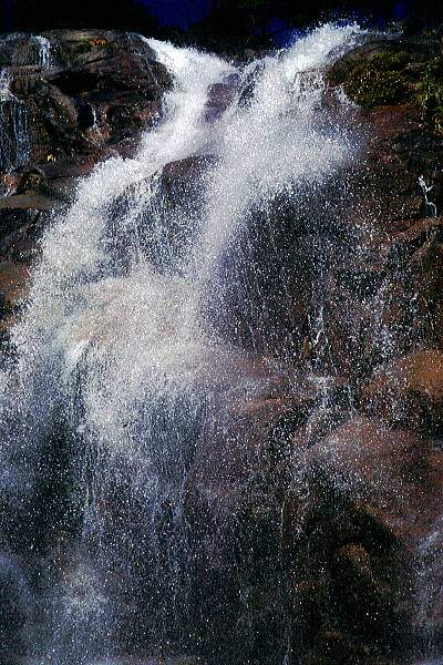 陽光を浴びて弾ける爆水の流れ。