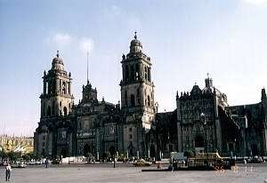 ソカロ 大聖堂 メキシコの都市はソカロ(中央広場)を中心として形成されている。 メキシコシティのソカロはアステカ帝国首都の神殿を破壊した跡に、写真の大聖堂や国立宮殿等を建設し宗教・政治の中心としていた。 いまでもこの大聖堂はメキシコ全土の教会を統括する大層な建物らしいが、私なんぞの目にはただごたごたとしただけのあまり秩序の無い建物に見える。 それもそのはずで、1573年に着工されたが完成までになんと250年を要しているらしい。 それだけ長けりゃ各時代の建築様式がごちゃ混ぜになるのも無理はないな。 |