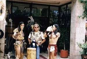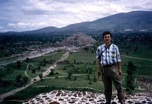 エジプトなんかと違って、メキシコのピラミッドは上まで登れるというので、息をきらしながら上まで登ってみました。