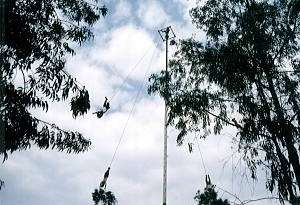 こんな商売もある PART2 博物館の外で見かけた不思議な光景である。 写真では解りにくいと思うが、公園の広場の真ん中に高い櫓が設置され、そこから逆さ釣りになった人たちが、グルグル廻りながら降りてくるという、一種の見せ物のようである。 ある程度、見物客があつまると、徴収係が料金の徴収(任意らしい)に廻り、その後に始まるという訳である。 ちなみに私はずっと見ていたが、最初から最後まで何が面白いのかわからなかった。 |