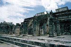 生贄の心臓を捧げたチャックモール像が安置されていた事で有名な戦士の神殿である。 かつてチャックモール像が安置されていた上段には、現在では複製の二代目に代替わりし、本物は国立人類額博物館で隠居の日々を送っているようである。 神殿の周囲に、戦士の姿を浮き彫りにした石柱が取り囲み、千本柱の神殿の異名を持つ。 |