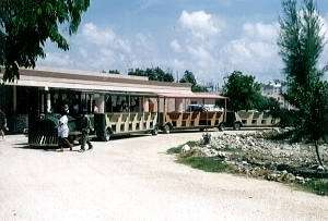 駐車場でいきなり足止めを食らう。 駐車場から遺跡まで約1km程の距離があり、写真のようなお猿の汽車に乗るか、遺跡まで歩くかの選択を迫られるのだが、快晴で晴天のカリブ海の太陽は、たった1kmの距離を歩く気力さえ、私から奪っていったのだ。