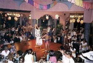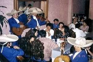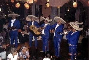 これも定番、マリアッチの演奏 むしろ、こちらがメインイベントであろう、これまたメキシコ名物のマリアッチである。 人の良さそうな、恰幅のいいおっちゃん達の演奏が、雰囲気を盛り上げてくれる。 これはお勧めできます。 |