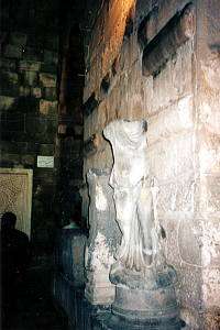 シタデル(城砦)内部 到着した頃には既に日が暮れて外は真っ暗であった。 シタデルと言われる城砦に遺跡の入り口があるのだが、ただでさえ黒っぽい遺跡と言われているのに、闇夜の烏じゃないけれど、何も見えんじゃないですか・・・!? シタデル内部でいけないと思いつつフラッシュを焚いて撮ったのがこの辺の写真である。 ←は内部装飾の石像と思われるが、なにせガイドも添乗員も客もみんな気が焦っているので記憶が定かではないのであった・・・。 |