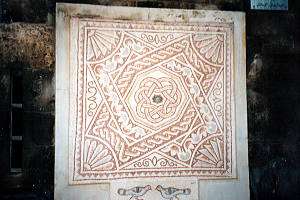 モザイク いかにも中近東って感じのモザイクである。 前記のシタデル入り口付近にあった(?)と思われる。 この後、この手のモザイクには嫌という程にお目にかかる事になる。 |