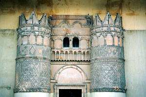 良く見ると、 外壁はモザイク模様で覆われているのがおわかりになるでしょうか。 |