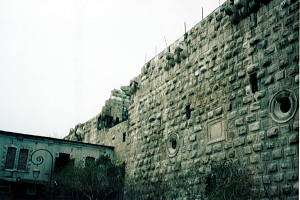旧市街の城砦 ダマスカスの歴史を象徴するのが、この旧市街地でしょう。 何と本当に街全体がこのような城壁で囲まれているのだ。 歴史的な建物はこの城壁の中に集中している。 内部は入り組んだ迷路のようで、実際にこのツアーでもビデオ撮影に夢中になってはぐれてしまった人がいるくらいだ。 |
