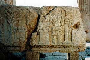 装飾壁? 現在の神殿は上記のように、壁と列柱と安置所しか無いが、敷地のあちこちにはかつて神殿を構成していたと思われるこのような彫刻や柱の破片が散らばっている。 これだけでも往時の壮大さを思わせるには充分だが、一度創建当時の姿を見てみたいと思うのは私だけではないでしょう。 |