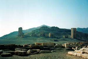 遺跡の入り口となる記念門である。 何の記念かは聞いたような気がするけど、忘れました(爆)。 ちなみに後ろの小山の上にあるのが、アラブ城砦です(くどいってか)。