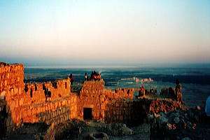 アラブ城砦から遺跡を見渡すとこんな風に見えます。 (拡大写真あり−38kb)。 |