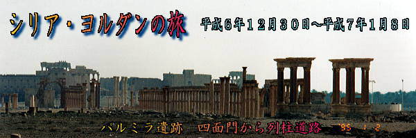 | 人にはふと旅に出たくなる瞬間があると思う。 それは進学、卒業、就職といった人生の節目に達した時の事もあれば、大切な人をなくした時とか恋に破れた時とかに心の傷を癒そうとしての事もあるだろう。 もちろん、ただなんとなくなんて事もあるけどさ・・・。 時は平成6年、とある事情でGWに出かける予定であったエジプト旅行をキャンセルする破目になった私は少しふてくされていた。 あこがれのエジプトが、アブシンベル大神殿が、ハトシェプスト女王葬祭殿が、カルナック大神殿が・・・。 自業自得な面もあるので仕方がないとはいえ、結果として多くの人にかけなくてもいい迷惑をかけた騒動が収束した頃には秋の風が吹いていたのだった。 普通ならもう一度エジプトへ・・・となる所なのだが、当時(今も?)少々ひねくれていた私は、どうせ行くのならあまり人が行った事の無い場所を求めて、シリア・ヨルダンの遺跡巡りの旅を選んだのであった。 出発は12月30日、何と「お正月を海外で」といううあれだ。 しがない会社員には長期旅行できる季節は限られてるんだ、などとうそぶきながら開港してあまり日も経たない関西国際空港からヨルダンへと旅だって行ったのであった。(でも、流石に20時間近い飛行時間にゃまいったねえ) |