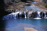 大千瀬川の本流に懸かる滝、県道横の市街地近くにある為に周囲には人工物の痕跡や工場等が見えている。 「三河のナイアガラ」といううたい文句から判る様に幅広の川全体が断層により滝となっているようだ。