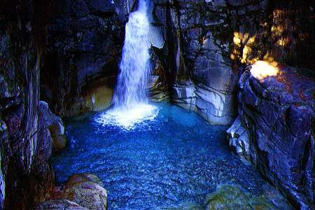 木漏れ日のスポットライトが、滝を照らそうとしているのか・・・
