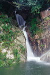 東多古知谷は鈴鹿有数の落差の百間滝が懸かる谷として知られているが、スカイラインの出合いにこんな滝が存在している事はあまり知られていないだろう。 この滝はいわゆるF1にあたるのだが、直下に大堰堤が造られた為、スカイラインからも見えず遡行者でもなければ殆ど知る人は無いだろう。 この日は雨模様の天気の合間を縫って撮影したので、通常では見られない二枚目の写真の様な光景を撮影する事が出来た。