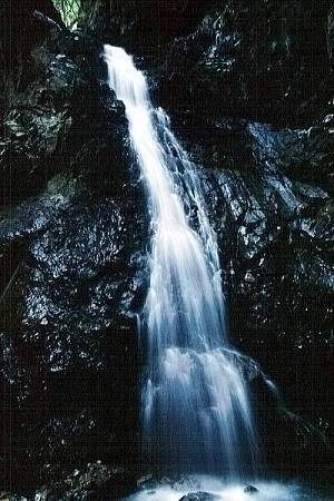 黒い岩肌に白い流れが映える不思議な空間だった。
