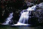 宮指路岳〜入道ケ岳を結ぶイワクラ尾根の広範囲の水を集めて流れる大岩谷には中流部の落差40mの白滝を始めとする多くの滝が懸かる。 下流部こそ堰堤で寸断されているが、中流部以降は源流まで