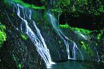 御岳山東面の四合目の山肌より湧きだした伏流水により形成される、いわゆる潜流瀑である。 檜の原生林帯である油木美林により蓄えられた清水が絶えることなく流れだしている。