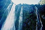 ボーウェン滝はミルフォードサウンド最大の滝で、直接フィヨルドの海面に落下する豪快な滝である。 ミルフォードサウンド周遊の遊覧船に乗るか、乗船場から徒歩15分で滝を望む事が出来る。 無名滝は、ミルフォードサウンドまでのバスツアーでの休憩地にあった滝で、ちょうど雨だった為、豪快な流れとなっていた。 |