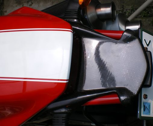●リアは、ライディングハウスのカーボン製シングルシートに変更。