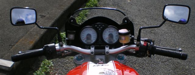 ●バックミラー(M.H.R.から愛用している標準装備のイモラタイプ)を移植。