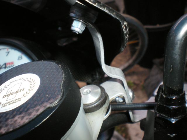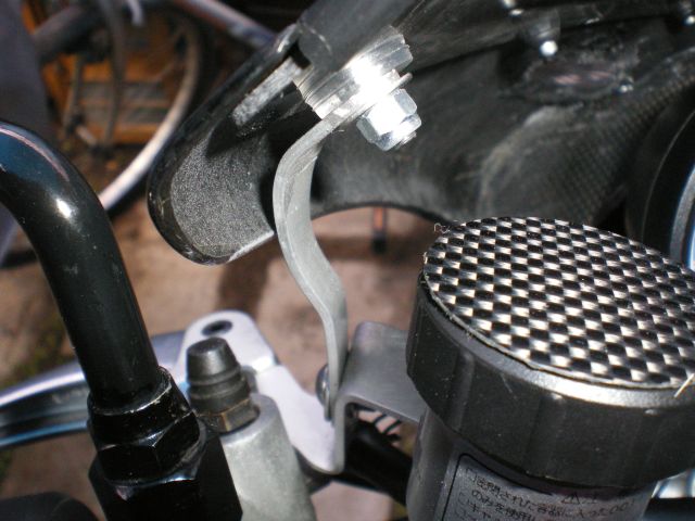 自作カウルステー(アルミ板の曲げ加工)で、走行時のカウルのブレ解消。