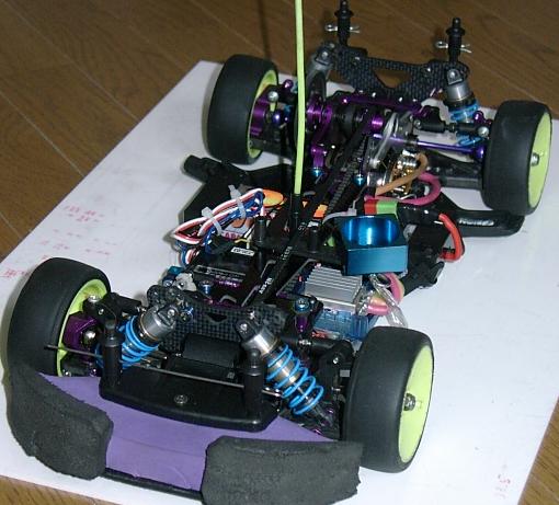タイヤ:D25(インナー:カワダMid)、オイル:#40、スプリング:ブルー(等長:HPI製) 、車高Fr:4.5mm、Rr:5.0mm