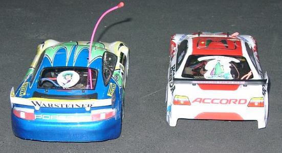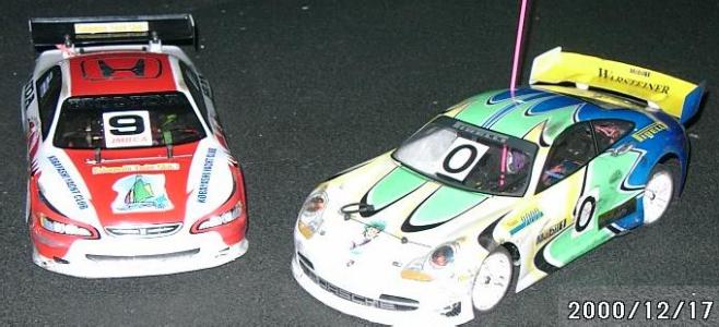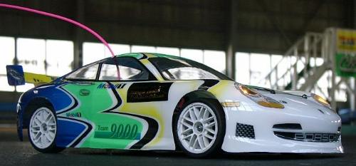 ボディーはポルシェ911GT3でライト点灯。電源は単四2本の別電源(wt:30g増加)