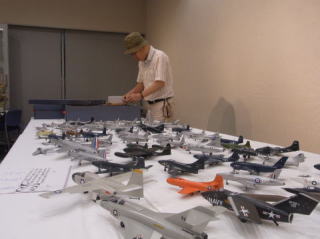 先ず、今回80機以上を出展した松崎会員のテーブル。世界各国の初期のジェット機、それも試作機や計画機が並んでいます。すべて1/72で統一されています。新しい動力ジェットエンジンを如何に手なずけるか、設計者の苦心のあとが見てとれます。
