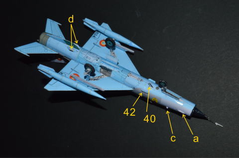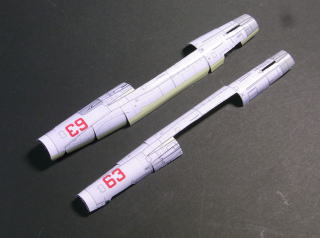 ![]() みくちゃんです。 2022年年賀のモデルです。 今年はMiG-21の複座型”U”型にしました。外形を見るとF型の機首とMFの後部を合体して複座型のキャノピーを載せれば完成、今年は楽が出来ると思っていましたが意外と時間が掛かってしまいました。 ネットで見つけたクロアチアの全面赤白チェッカー模様の機体が気に入って採用することにしました。全面チェッカー模様ということはモデルにスケールを当てて検証すると同じことでした。大部分はうまくいきましたが主翼端が隣の色に入ってしました。そこで翼端の正方形を長方形にしてごまかしています。(スパンが広すぎるということですか原因はまだ不明です) ≪2021年のコメント≫ 2021年年賀のモデルです。 ヨーロッパ戦闘機シリーズの第4弾はロシア(ソ連)のミグMiG21です。MiG21は多くのタイプがあり、使われた国が多く塗装も様々なものがあります。今回は初期の量産型MiG21F-13をモデル化しました。塗装は代表的なソ連機と、ネットで見つけた動画にあったインドネシア空軍機です。MiG21はとてもすなおな形状をしているのでペーパーモデル化がわりと簡単でした。しかしディテールにこだわったため資料を参照する際、様々なタイプの違いを理解するのに手こずりました。大きなショックコーンの後期型は次回にモデル化したいと思います。 □ 一般的な注意事項 1.部品の切り抜きは出来るだけ正確に。ただし、のりしろの部分は多少の脱線は問題ありません。 2.接着の際は、外形やパネルラインを正確に合わせて、ズレの無いようにします。 3.接着は確実に。しかし接着剤で表面を汚さないように気をつけましょう。 4.製作例はコクヨの厚さ t 0.15mmのインクジェット用薄口写真用紙で作りました。 (表面のコートが割れにくくお勧めです) 厚い紙で作ると曲げにくい箇所があります。 5.ノリシロの折り曲げ方向(MiG-21UM) ![]() □ 組立手順 1..1.胴体左、2.胴体右を切り出して丸み付けをして上側のノリシロを接着します。中央部のノリシロを最初に接着します。次に下側のノリシロを接着します。 ![]() U型は胴体左右にφ2mm程度の丸棒を当ててキャノピー取付部を谷折りします。41.キャノピーベースを取り付けます。 ![]() 2.3.前脚箱を組み立てます。前脚箱を胴体内側に接着します。 ![]() 3.5.主脚箱左、6.主脚箱右を組み立てます。4.主翼を切り出し、丸味付け、折り曲げを行って内側に主脚箱左右を接着します。主脚箱は角穴の縁に合わせて取り付け、角穴にはみ出さないように注意します。主翼の上面を接着し、下半角を付けます。 ![]() 4.主翼上面に7.主翼フレーム前後を取り付けます。主翼に胴体を取り付けます。 ![]() 5.8.垂直尾翼を切り出し、丸味付け、曲げを行います。上端部は丸棒などに押し付けて丸味付けしてください。赤線の箇所は定規などを当てて谷折りのクセを付けます。 左右を接着します。 ![]() 6.9.水平尾翼、10.垂直安定板を組み立てます。 ![]() 7.8.垂直尾翼を胴体に取り付けます。尾翼をつぶさないように棒などを差し込んでノリシロをピンセットなどで押さえます。同様にして9.水平尾翼、10.垂直安定板を取り付けます。 ![]() 8.13.胴体下ノリシロを胴体に取り付けます。11.主脚箱左、12.主脚箱右を組み立てます。 ![]() 11.主脚箱左、12.主脚箱右を胴体に取り付けます。14.胴体下を胴体に取り付けます。 ![]() 9.15.胴体上、16.胴体上フレームを組み立てて、胴体に取り付けます。 ![]() 10.17.キャノピーを組み立てます。切込み部の紙端面は同色で塗装すると目立たなくなります。17.キャノピーを胴体に取り付けます。 U型は内側に42.キャノピーノリシロを接着し切込み部分を密着させます。 ![]() 11.18.ショックコーン、19.インテークダクト内、20.インテークダクト外、21.ダクト取付板、22.整流板を組み立てます。19.インテークダクト内の中に1g程度の重りを入れてください。22.整流板は最後に取り付けます。 ![]() インテークダクトを胴体に取り付けます。 ![]() 12.23.アフターバーナー、24.タービン、25.可変ノズルを組み立てて、胴体に取り付けます。 ![]() 13.26.前脚、27.前脚扉」、28.主脚柱、29.主脚リンク、30.主輪、31.シリンダー、32.主脚扉、33.主輪扉を組み立てます。作例は脚柱と車輪は1mmの厚紙に貼付けて切り出しました。 ![]() 14.35.ミサイル、36.増槽はお好みで取り付けてください。39.立体化パーツは取り付けなくても雰囲気は出ます(上右の写真を参照) ![]() ![]() ![]() 以上で完成です。 完成写真 ![]() ![]() ![]() ![]() ![]() ![]() ![]() ![]()