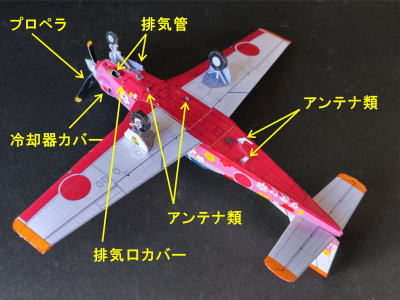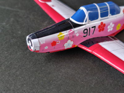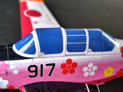 基本構造はT-3と同じで、比較的組み立てやすいものですが、新しい機首の部分などは組立に少し注意が必要です。標準塗装の機体に加えて、防府北基地の