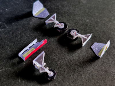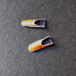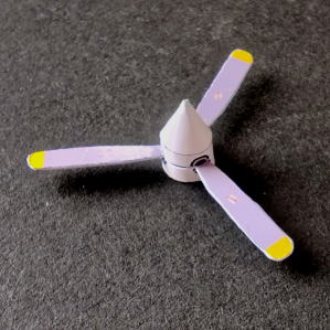 14.垂直尾翼、フィンを切り出して組み立てます。フィンは余白を残した状態で折り曲げ線に沿って浅くカッターを入れて折り曲げてから、