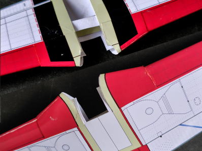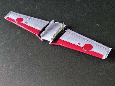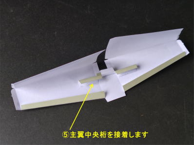 5.主翼中央桁を切り出し折り曲げ、主翼内側中央に接着します。