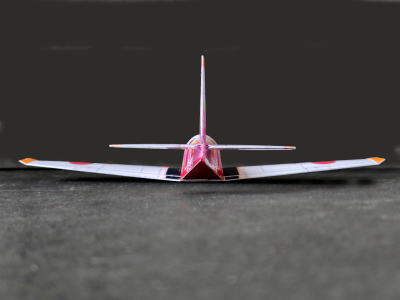 15.垂直尾翼とフィンを胴体に取り付けます。モデルを後から見て正しい角度で取り付けられているかを確認します。