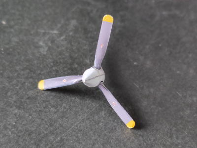 プロペラブレードは表側(色の薄い方)に丸味付けを行います。また表裏とも取付側をφ1.5~φ2程度の丸棒に押し付けて半丸断面します。