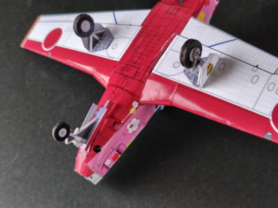 3.胴体後下を切り出しノリシロ2箇所を直角に折り曲げます。ノリシロは先に片側だけを接着します。前後位置は写真を参照してください。