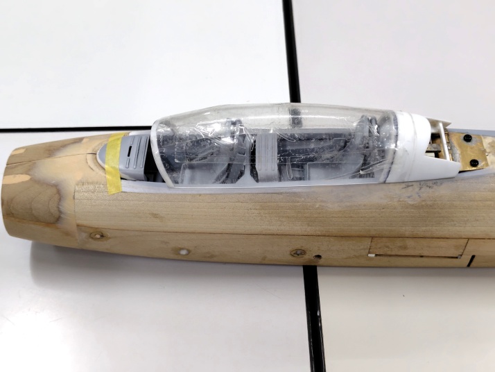 身体の方は相変わらずで喉も枯れたままです。 模型は少しずつやっていまして本日持ってきました。、風防を開閉するように作りましたが、後ろのフィレット部分が巧くいくかがこれからの悩み処です。