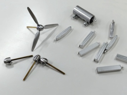 相変わらずユンカース90ですが、まだプロペラ、降着装置、エンジンと、細かい所だけ残って結構苦労しています。 昔は四発機でもチャカチャカとある程度やれたんですが目が悪くなってね、なかなか出来ない。 それで今回完成品は一個しか出来なくて残りは材料のベースでこんなにガチャガチャの状態です。スピンナーと軸までは出来ています。 そう言う状態でホビーショーに形のある物を持って行けるか怪しい状況になっていて、何も持って行かない可能性の方が高いですね。