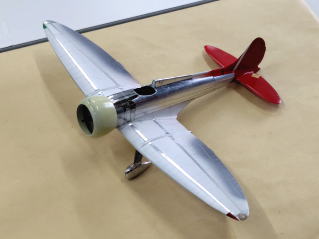 久しぶりにやっと飛行機を持って来ました。 アルミを加工する技術が無いんで、アルミ箔をおっつけようと思いました。 兎に角九六艦戦を作りたくってこうなりました。 なかなか根気が続かないので今日までに貼れるかなと思いましたが、限界でした。