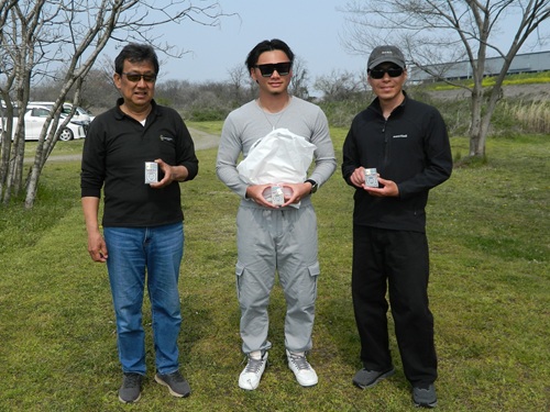 | ↑2025.3.8 午後からは飛行会を開催。画像は終了後の講評。 | ↑2025.3.8 AB-24級の入賞者左から第三位、優勝、準優勝。 |