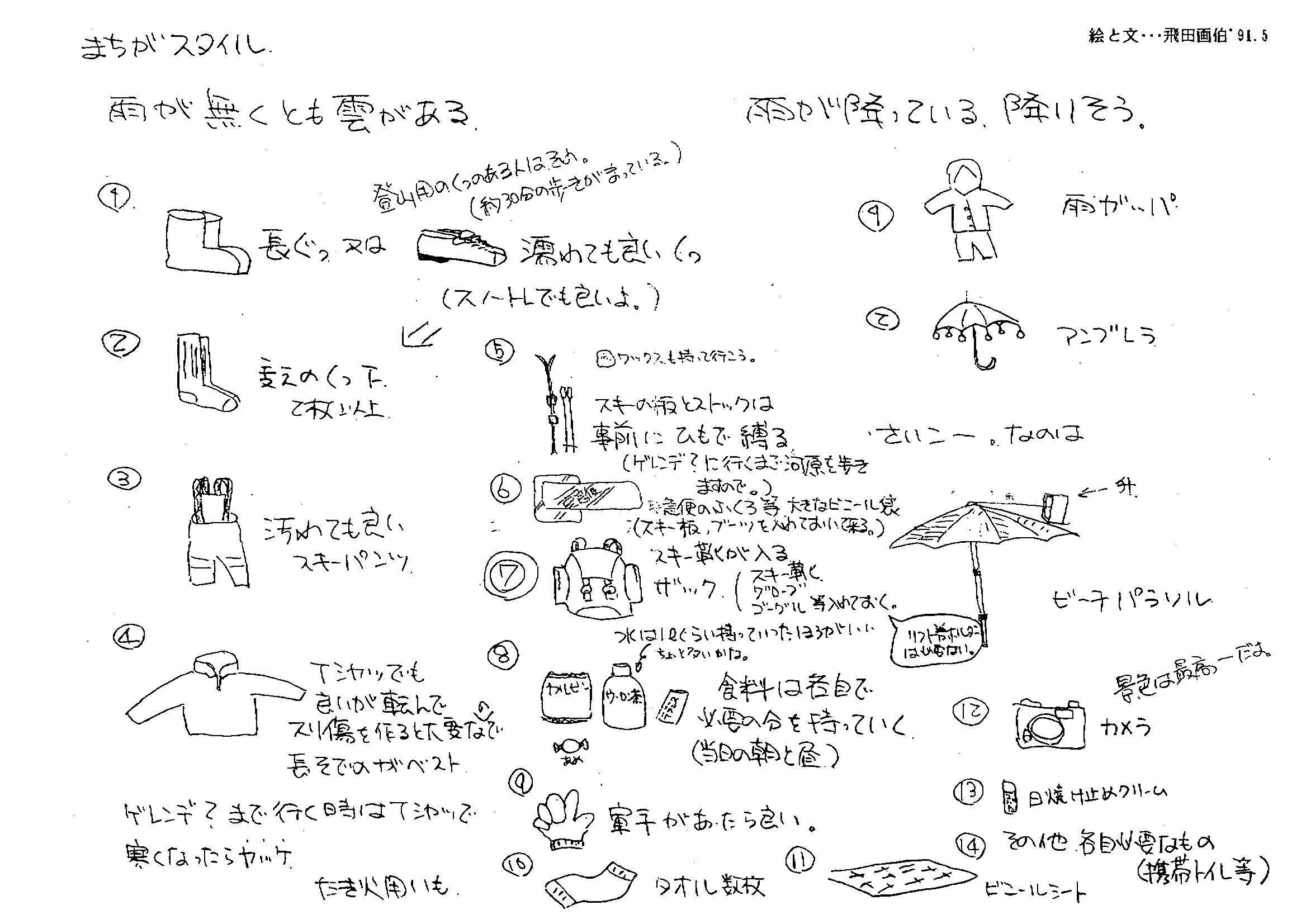 ☆以下必携品! 山の天気は変わりやすいもの、晴れていても油断は禁物だ! |