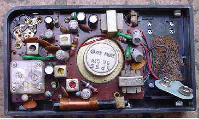 このラジオの製造時期では変換段に使えるトランジスターの製造が間に合わなかったらしい。